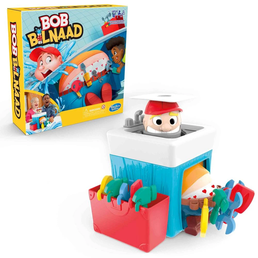 In het spel Bob Bilnaad kies je om de beurt een stuk gereedschap om aan de riem van Bob te hangen. Doe dit wel voorzichtig, want als de broek van Bob afzakt sproeit er water naar buiten en ben je af!