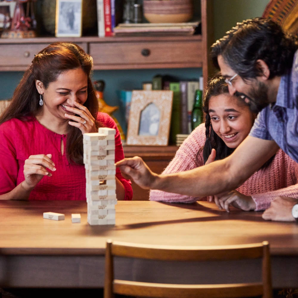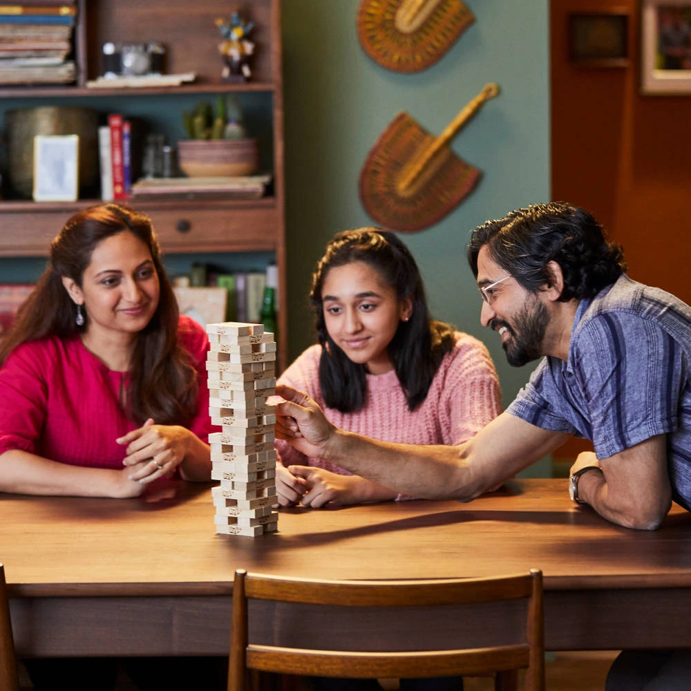 Houd jij je zenuwen in bedwang bij dit spannende stapelspel? Spanning, strategie en inzicht is nodig om de Jenga toren niet bij jouw beurt te laten vallen!