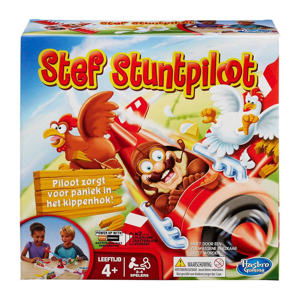 - Let op: het Stef Stuntpiloot spel werkt op twee AA-batterijen. Deze zijn niet inbegrepen.