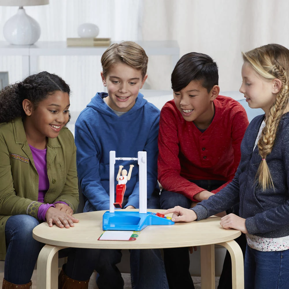 Geef je eigen draai aan het leven met dit spannende en unieke Toffe turner-spel. Spelers bepalen zelf de snelheid en het ritme waarmee de turner aan de hoge rekstok zwaait. Druk op het juiste moment op de knop, zodat de turner loslaat en de perfecte landing maakt. Laat hem op z’n voeten op de mat landen om te winnen! Speel in je eentje, een tegen een óf daag je vrienden uit voor een toernooi. In de spelregels vind je tips om de perfecte score van 100 punten te halen.